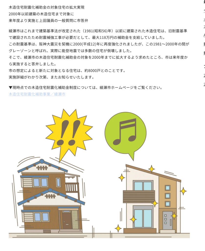 木造住宅耐震化補助金の対象住宅の拡大実現